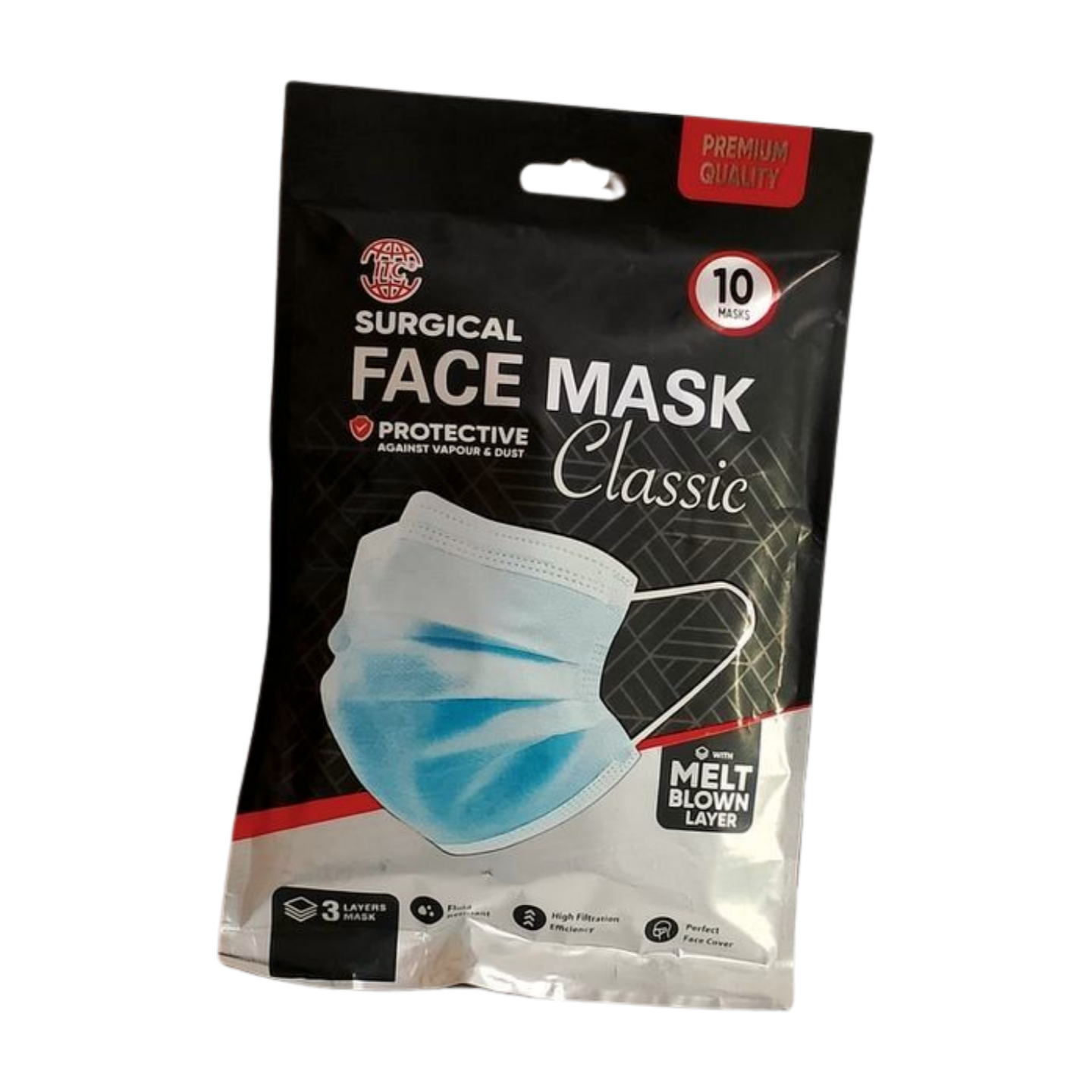 FACE MASK disposable, 3-ply surgical face mask designed for medical use, providing a high level of bacterial filtration efficiency (BFE ≥ 98%). Comfortable, breathable, and latex-free, with ear loops and an adjustable nose clip for a secure fit. Ideal for healthcare settings and general hygiene protection.